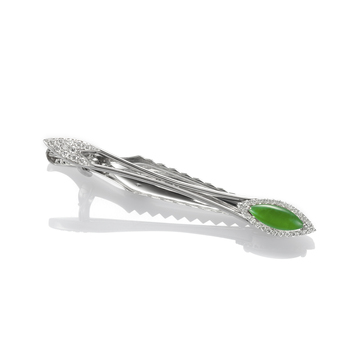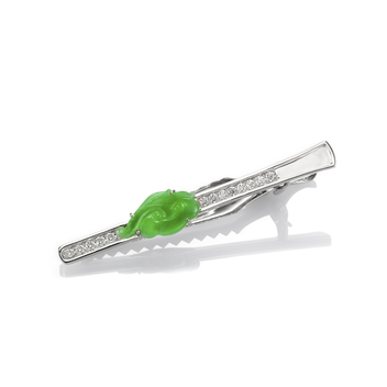 翡翠領帶夾,簡練俐落,形意皆美。玲瓏的主石,質地溫潤,玉色如春,或作馬眼造型,或以靈芝如意入題,薈萃了天地與人間的神采,搭配鑽飾設計及鑲嵌,既呈顯篤定從容的領袖氣度,更有天從人願、事事如意的佳旨,寄寓了大展鴻圖的涵義。