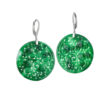融入祥雲紋飾的翡翠造型珠寶,象徵吉兆降臨、喜氣滿盈,它不只是形式的美,更含藏著溫暖的祝福,亦深具豐美的文化底蘊。無論是將雲紋刻劃於主石中,抑或將設計的心思安排於鑲嵌之間,曲線優雅的祥雲紋,它的古典氣韻及現代美感,皆能迷人眼目,寄寓吉祥如意。