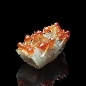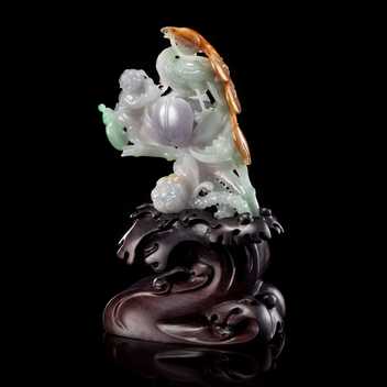 此項特殊的雕作工藝,關鍵之處,在於選材與構思。玉材或翡翠的原石,形體各異,色彩相間,雕作者必須因形就勢、由色施藝,方能成就匠心獨具的俏色巧雕。