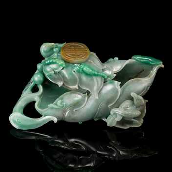 由於每塊玉材翠料的皮色與形狀都是有限的,因此,要在有限的石材條件中雕作出精湛的作品,則必須仰賴玉工的巧思。我們可以這麼說:卓越的巧雕作品,是自然造物與人類靈感的完美結合,它們是極富藝術性與人文價值的,並且,它們也值得一雙懂得藝術之美的眼睛去細細品翫,去發現蘊藏在其中的無窮魅力。