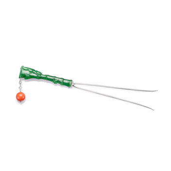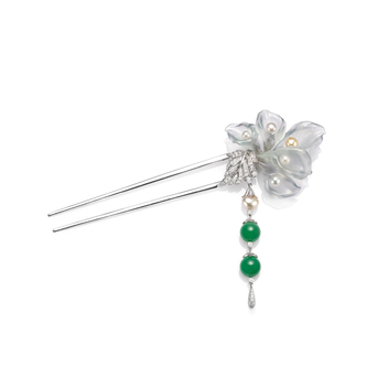 步搖,演變至近代,除了形制的多樣化,取材更為講究。以翡翠為材的玉步搖,尤其深受青睞。翠玉的材質本身,即標誌著優雅與高貴,再琢以花姿或吉祥瑞飾,綴以垂珠,插於髮髻之間,隨步履移動而搖曳,婉約風情,在雲鬢花顏裡,有著難以言喻的迷人的靜美。
