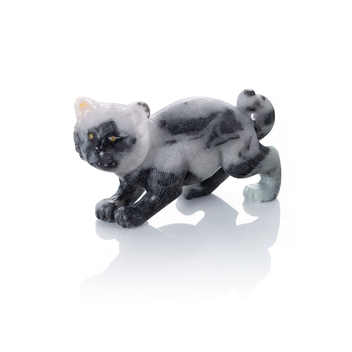 由翡翠琢磨而成的可愛狸奴,姿態萬千,造型各異,隨著翡翠玉色的豐饒多彩,以及雕琢工夫的細膩精巧,貓兒的毛色,乃至性格,亦在刀筆之間活靈活現起來。