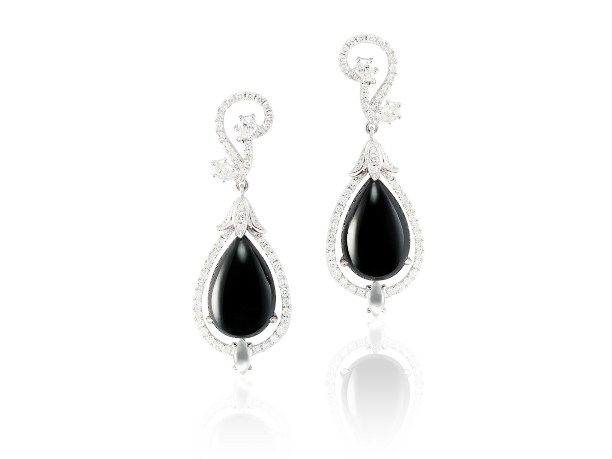 夜的深靜裡,有雪之光,黑與白,舞出優雅樂聲。墨翠玉質,溫潤深邃,經典的水滴造型,凝練著沉靜之美,亮燦鑽飾勾描出一襲清靈婉轉,再妝上如雪白翡,時尚的窈窕裡,有典雅的內蘊。