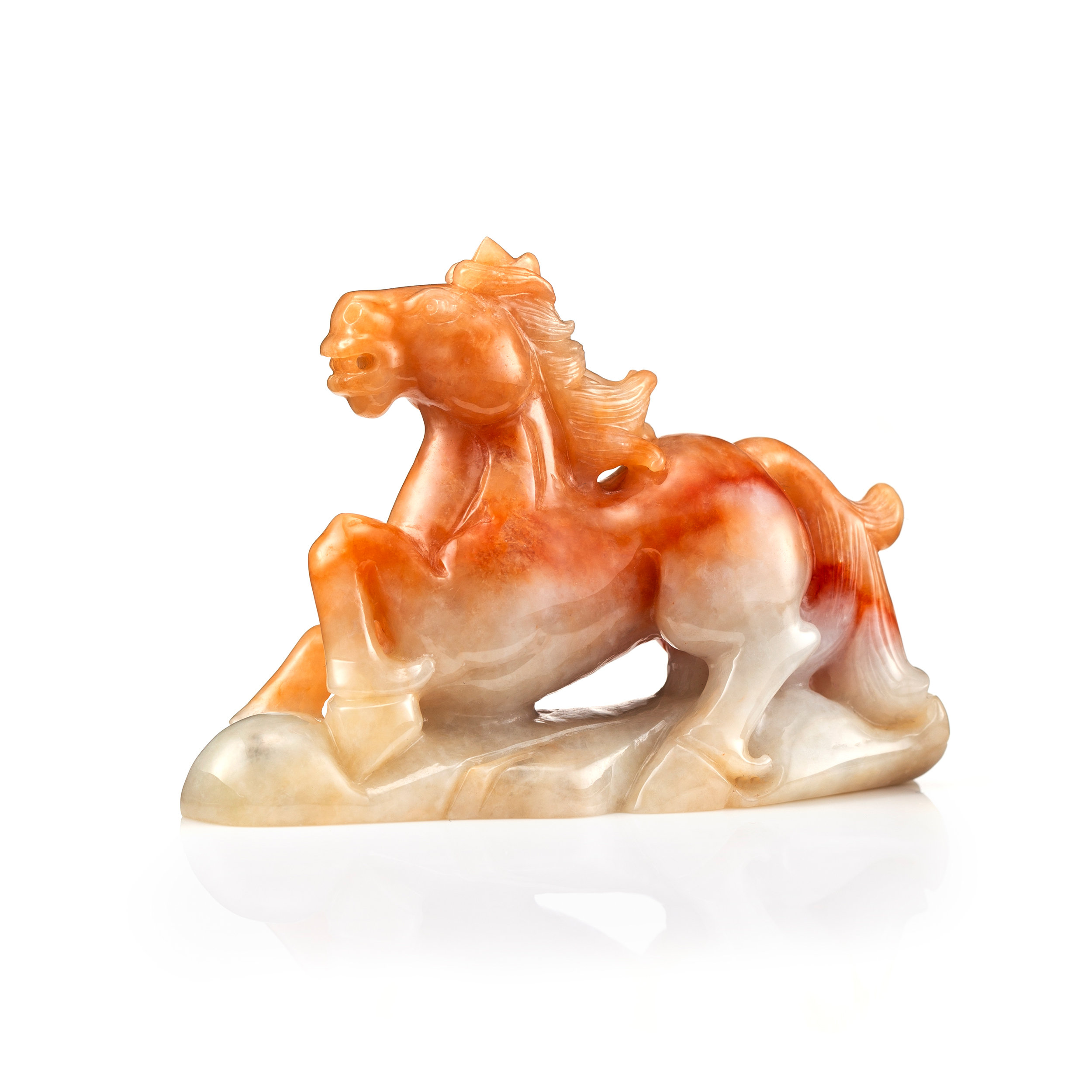 以翡翠為材,雕作「馬」的主題,工藝師傅除了須將馬的形貌表現到位,包括它的面目、馬鬃、身軀乃至蹄與尾,更重要的,是將馬的精神意態勾勒得準確,如此,方能讓玉馬雕作「活」起來,擁有它自己的獨特精神。