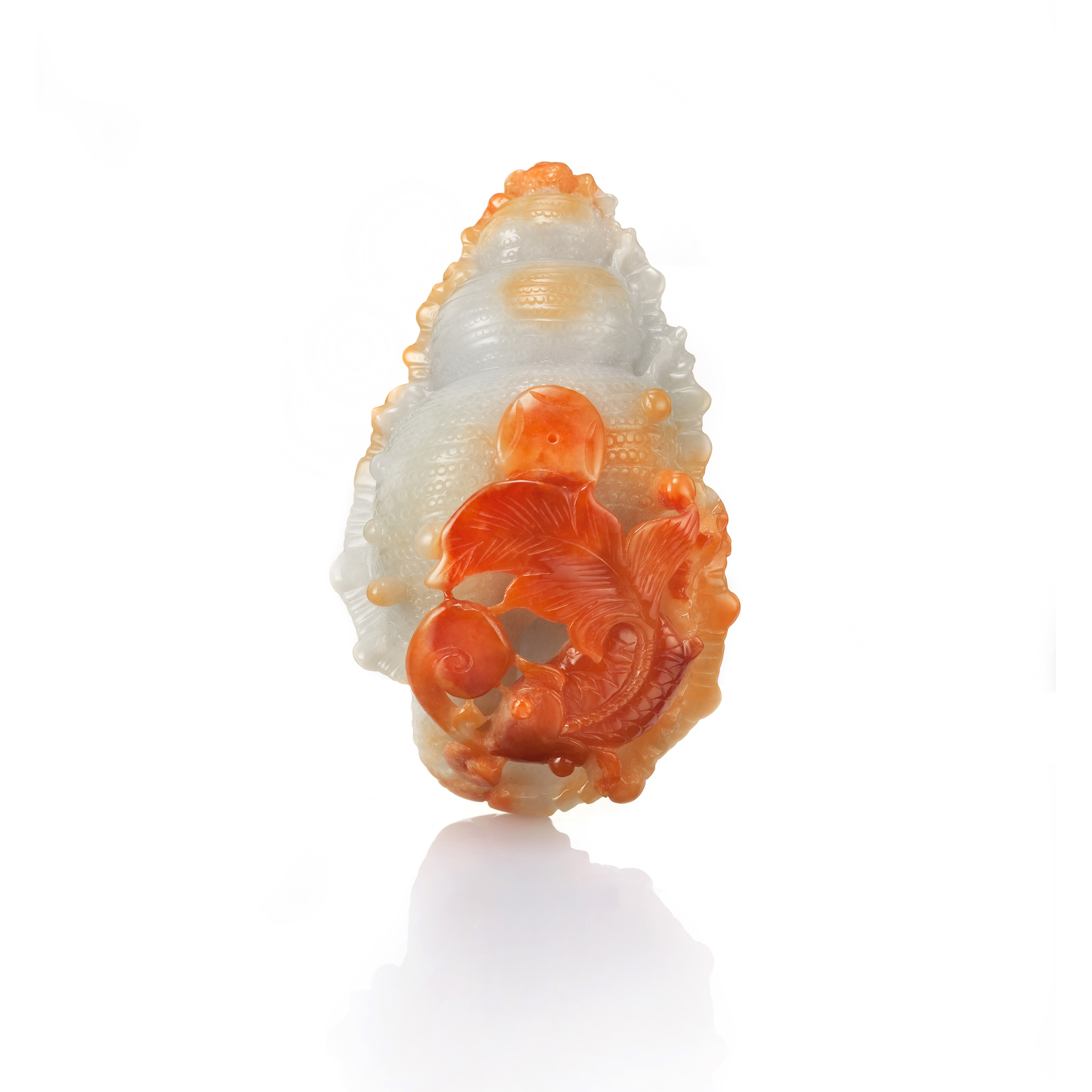 翡翠貝殼雕件,小巧精緻,盈握於掌心,瑰麗的色澤,栩栩的刻鑿,可以使人的心境轉瞬遼闊,彷彿聽見了海的聲音。