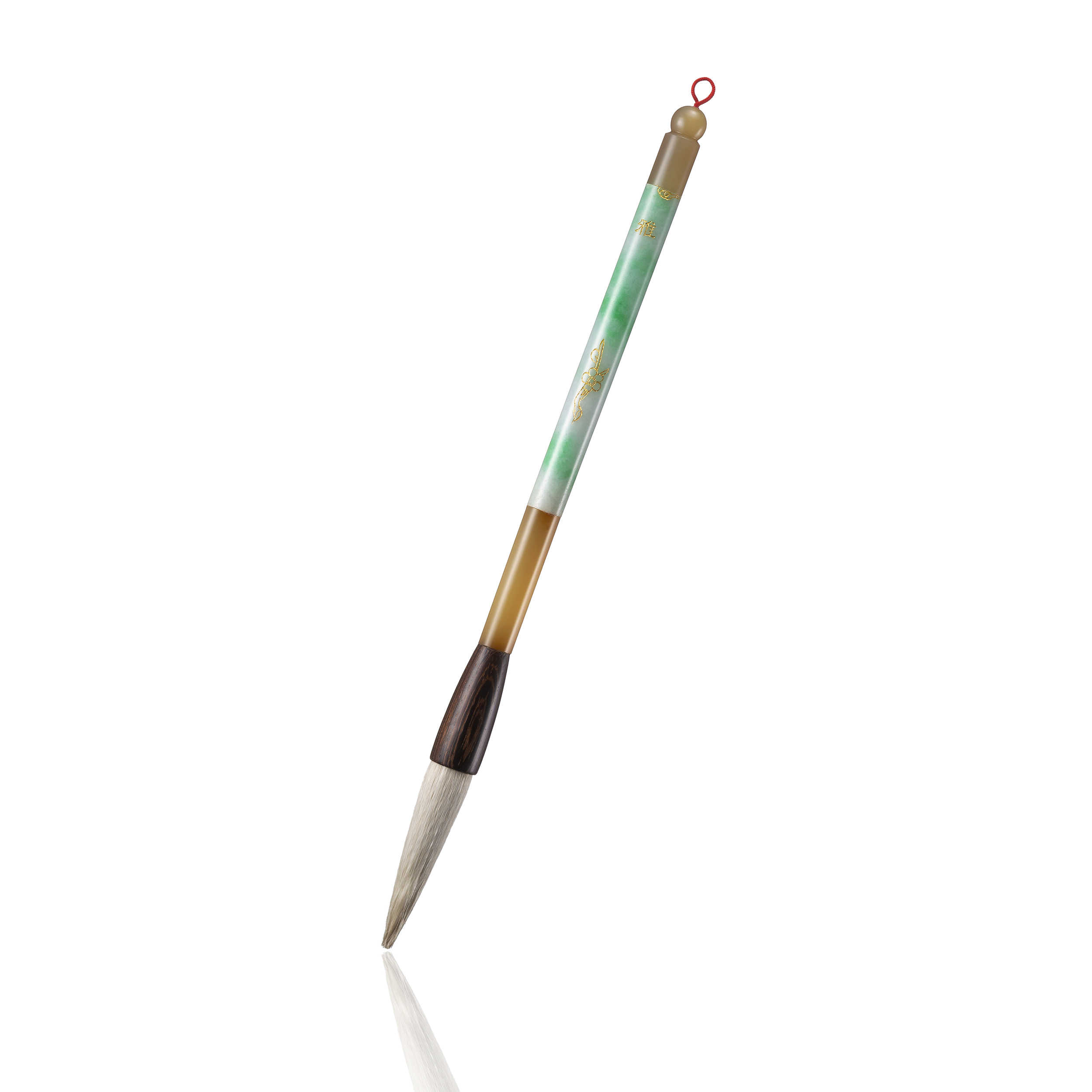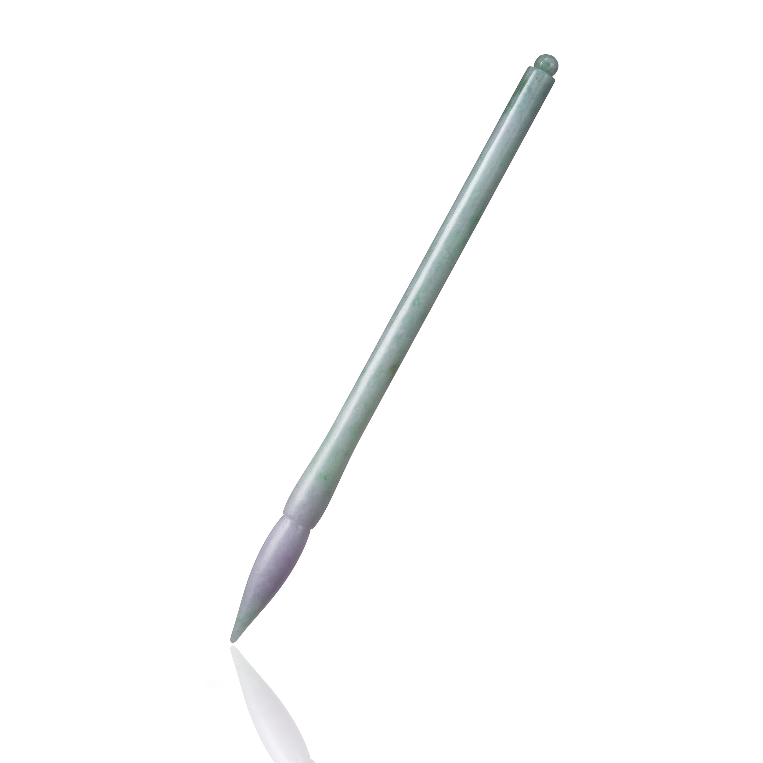 今以溫潤翡翠琢製為筆,翡翠本身的人文意蘊,即與文采情思有若合符節之妙,而筆的形制,無論是毛筆、鋼筆或翡翠筆管,再再都象徵著泉湧靈思,在字字珠璣之中,得以展現貫世的智慧。
