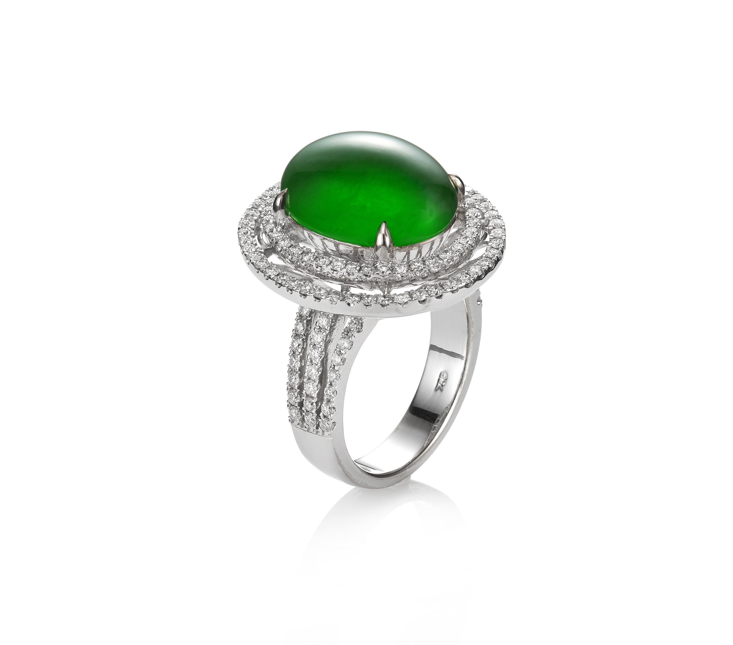 翡翠,是來自大地造化的禮物,透過作玉者的慧眼與巧心,結合細膩的珠寶工藝,終能在纖纖玉指間成就為永恆的美麗,這也正是極品蛋面翡翠戒指之所以在各大國際拍賣會場上屢屢拍出高價、備受珠寶藏家青睞的緣故。