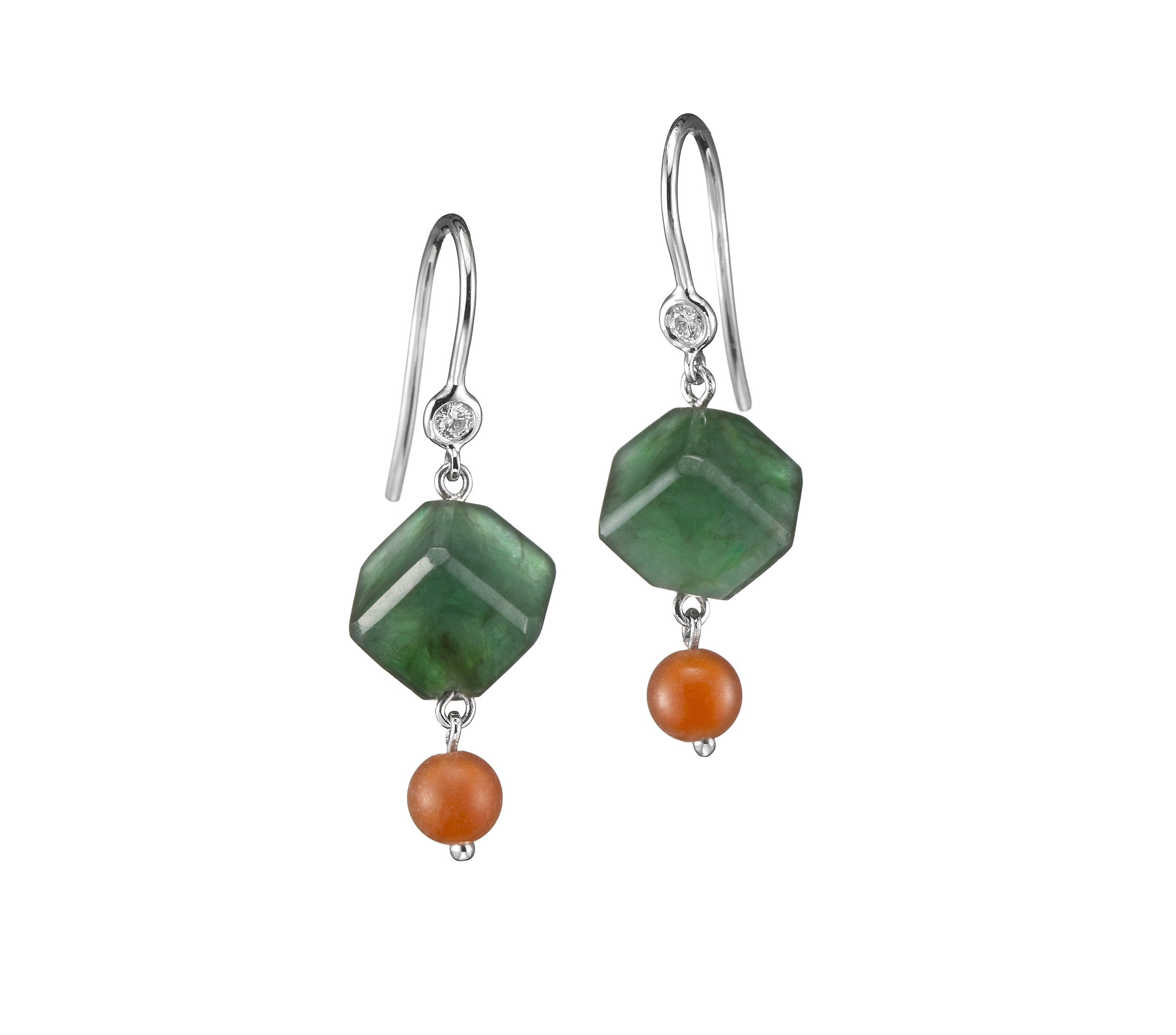 幾何形制的表現,是美學領域中最經典的創意原型,亦是時尚界永不褪流行的靈感元素,【小玩意】翡翠耳環系列,以溫潤多彩的翡翠為主石,將其琢磨為方塊與圓珠,再點襯宛如星光的鑽飾,綠翠與白翡以及紅翡,巧妙的顏色配搭,詮釋出不同的個性丰采,是充滿青春顏值的輕珠寶款式。