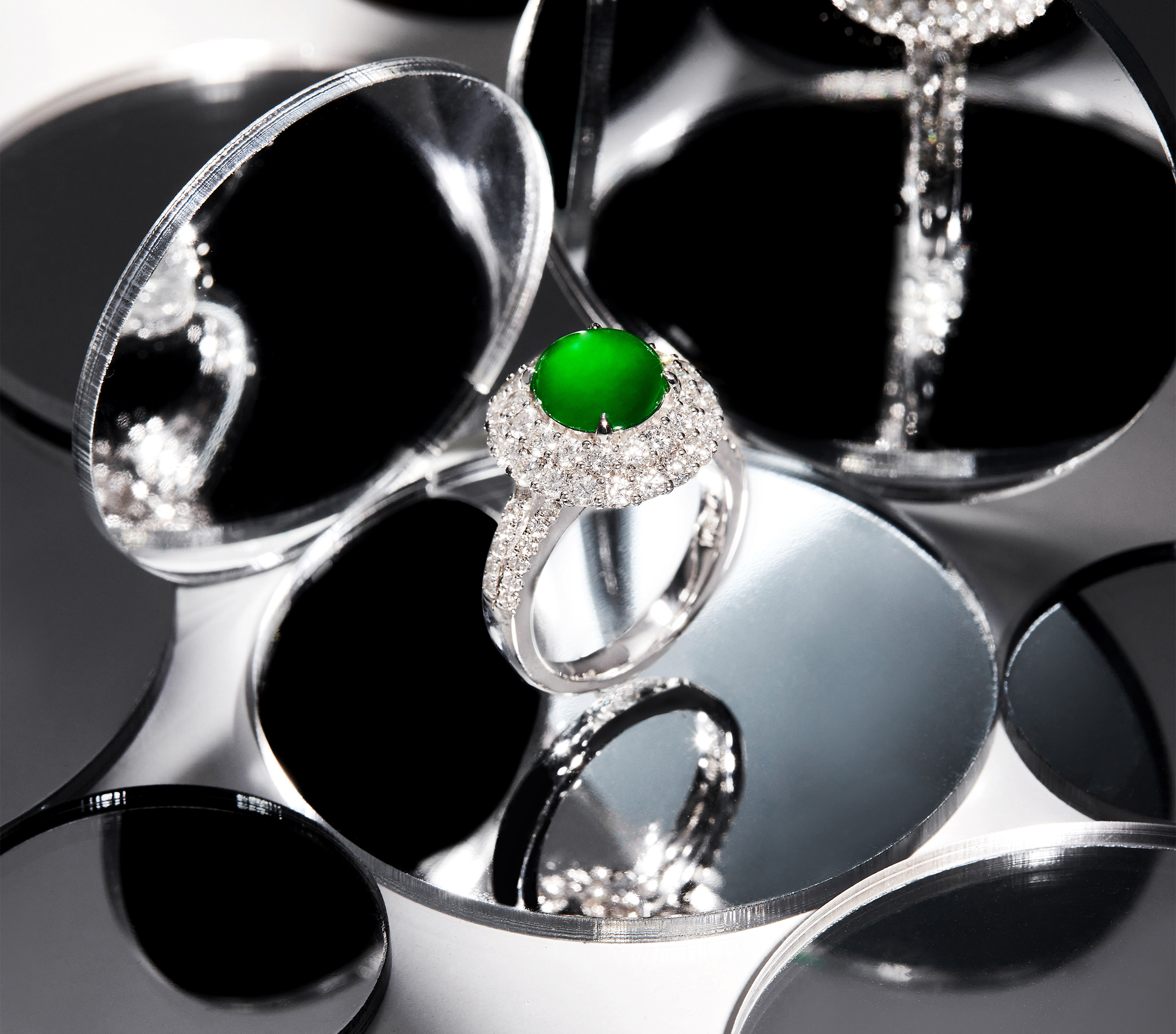 翡翠蛋面,最能聚焦眾人目光,它的美,美在它獨特的靈氣風采,由於翡翠本身的晶體結構細緻,琢磨完成的蛋面,光線可穿透其間,呈現通透效果,更能映出翡翠的水潤感,那樣脫俗非凡的氣韻,在珠寶的領域中,是獨領風騷的。