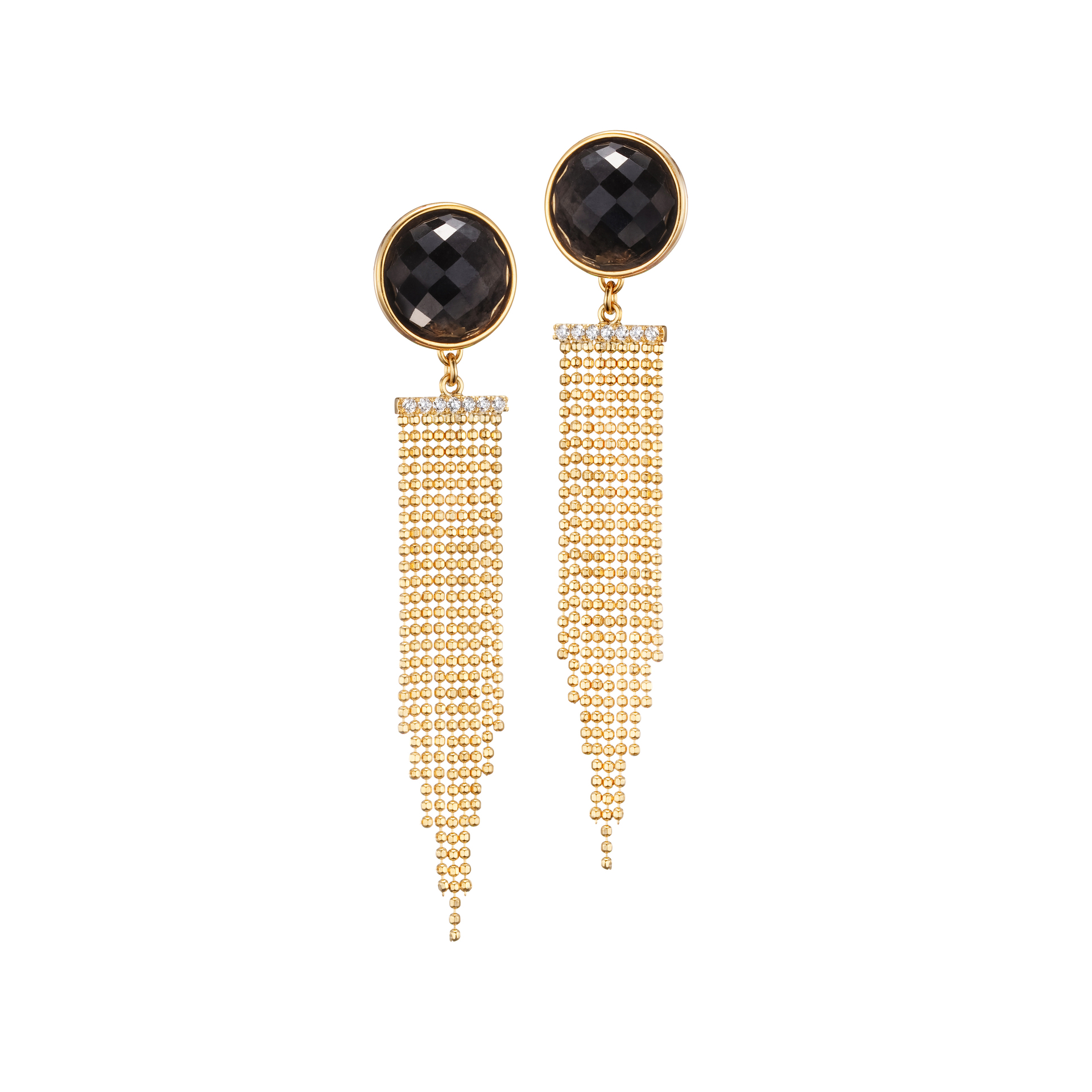 波希米亞風潮在伸展台上從2015年秋冬一路延燒至2016年春夏,珠寶設計中並不陌生的流蘇、珠串…等元素,在整體時尚巨浪的推波助瀾之下,又為高級珠寶增添摩登現代的流行風貌。JADEGIA玉世家跳脫翡翠內斂含蓄的印象,將波希米亞風融入設計當中,在線條輪廓、造型結構以及色彩搭配上,帶來不同於以往的巧思。以墨玉為主石,深濃幽邃,搭配18K黃金,經典的黑色既神秘又富有內涵,耀眼的金色則高調又不失質感,其中一款異材質組合流蘇套鍊,以菱格紋切割墨玉,搭配紅、藍寶石珠串作為流蘇,予人率性而不失華麗的氣質,展現懷舊的歐洲風情;同樣以菱格紋切割墨玉為主石的耳環,則使用一整片黃K金流蘇來詮釋波希米亞情懷,再鑲嵌璀璨亮鑽,以摩登的方式結合古典元素,絢目亮麗而又隨興不羈;此外,另一款將墨玉材質打磨為光滑圓珠的垂墜耳環,由小至大串疊,飽滿圓潤的曲線更顯女人韻味。不論是襯於胸口,或掛於耳畔,當流蘇與珠串舞動,以曼妙的韻律隨肢體擺盪,盡情享受成為時髦浪漫的波希米亞女郎。