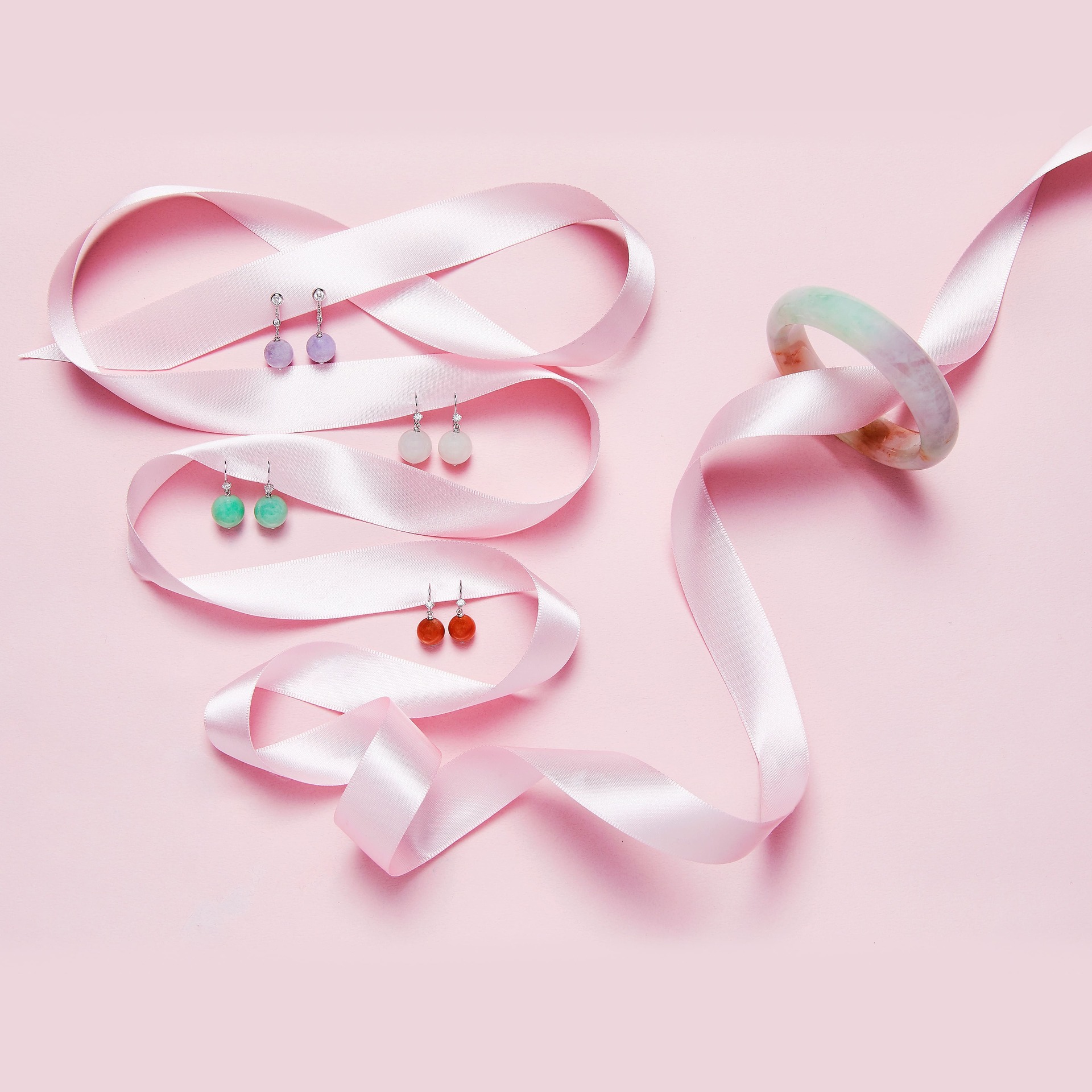 JADEGIA玉世家母親節新品-【最初】翡翠圓珠鑲鑽耳環系列,以「愛的原點」為設計概念,設計師選用綠、紅、白與紫等四種翠色,色彩巧妙結合渾圓球體作為珠寶基調,化繁為簡的設計風格既優雅又別緻,彷彿回到生命的最初、愛的最初,所有的記憶、夢想和故事就從這裡而誕生。延伸了珠寶豐富的意涵,【最初】系列演繹著親人間無可取代的情感連結,是獻給母親的最美頌讚!