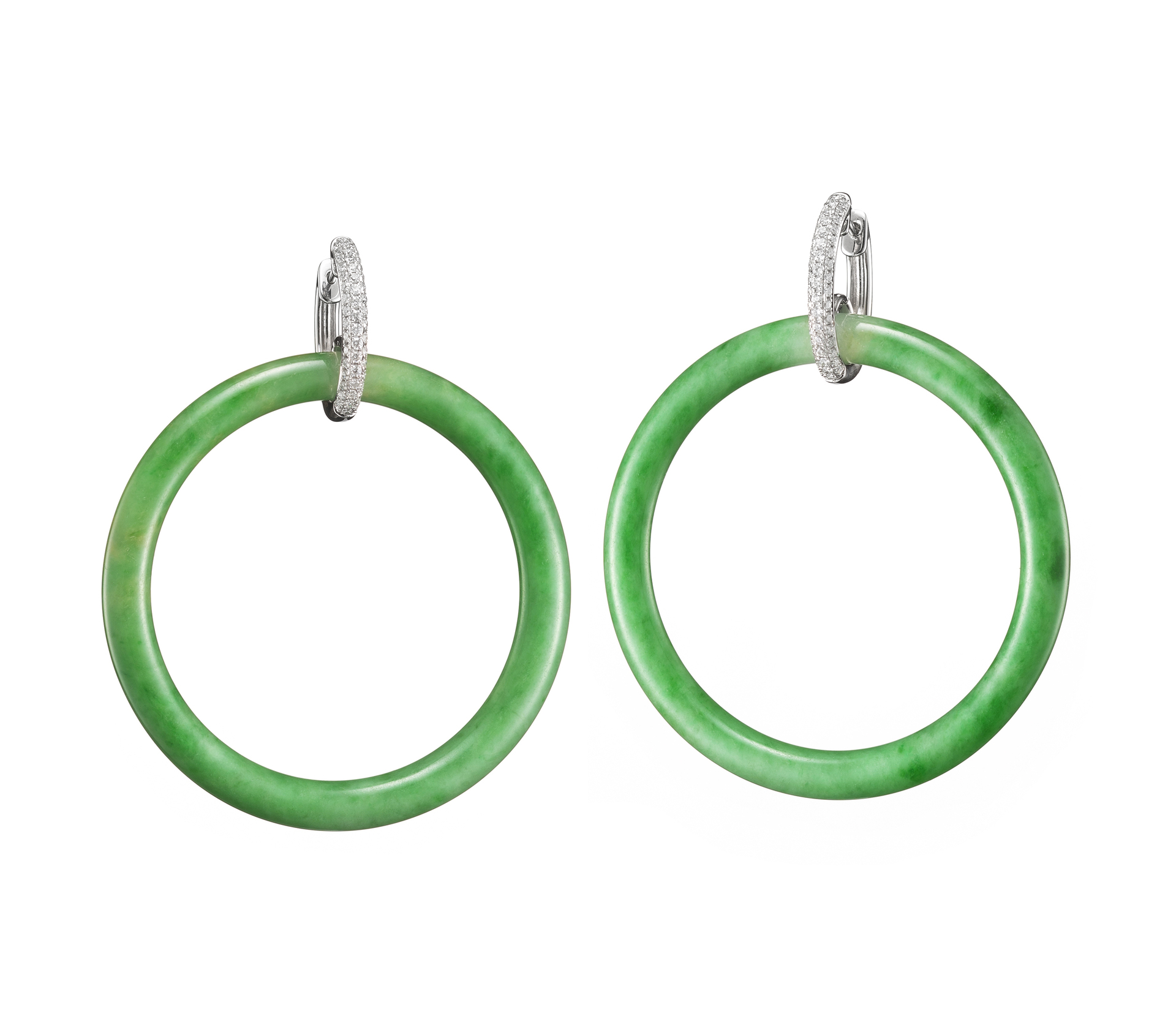 除了永不褪流行的經典款式之外,此系列,亦有充滿個性風格、簡練俐落的配飾。滿月形胸墜,翠面玉色氤氳,展現綠翠與紅翡的天然之美,鑽石輕襯於旁,朝氣又自信。大環形耳墜,更是吸引眾人眼目,是最燦亮的青春姿態。簡潔、大器的時尚飾物,也正是2019下半年的流行趨勢。
