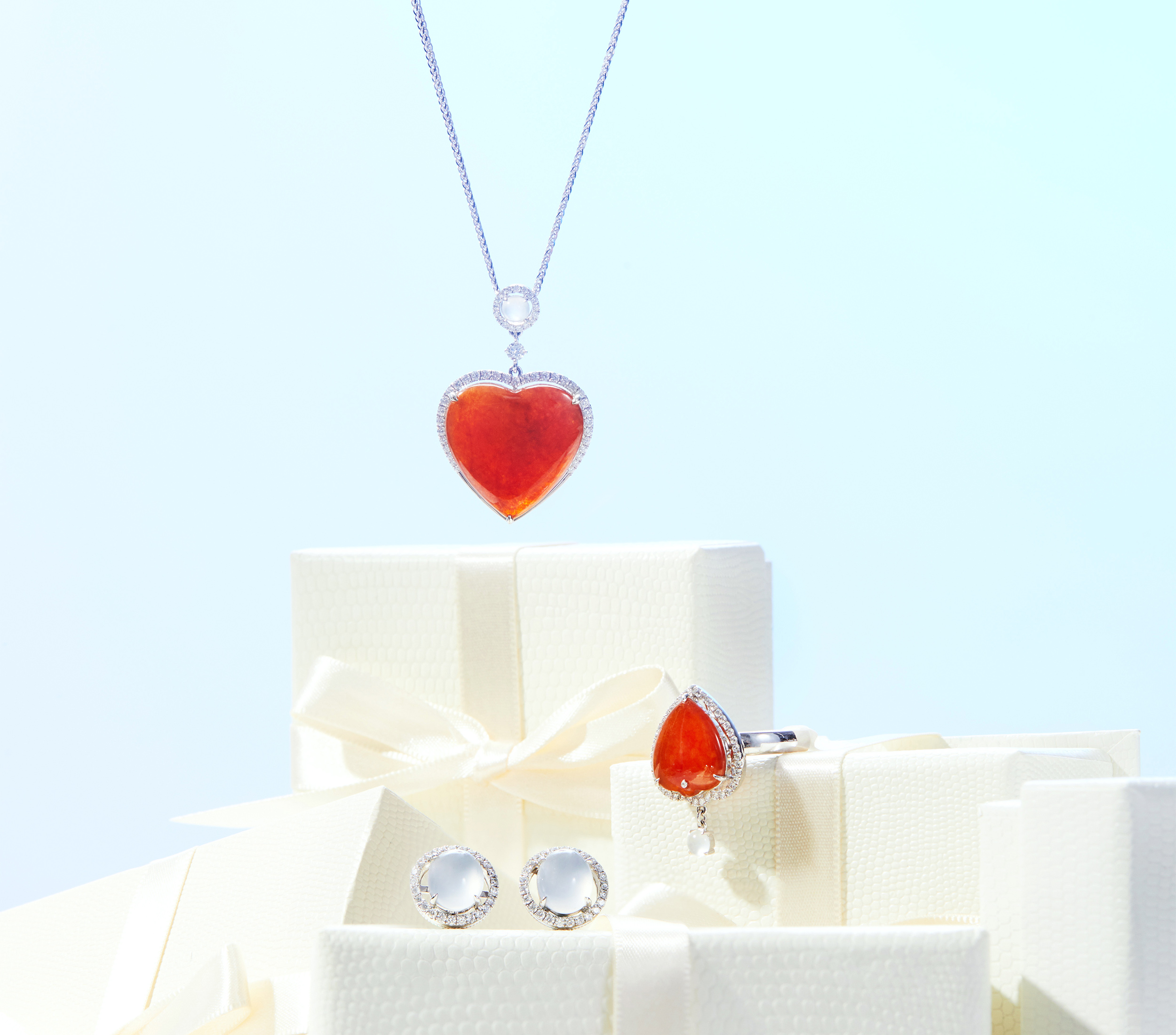 紅翡如心,白翡似雪,在細膩琢製的翡翠珠寶中,真愛,有了美麗的形狀,也有了詩意的內蘊。