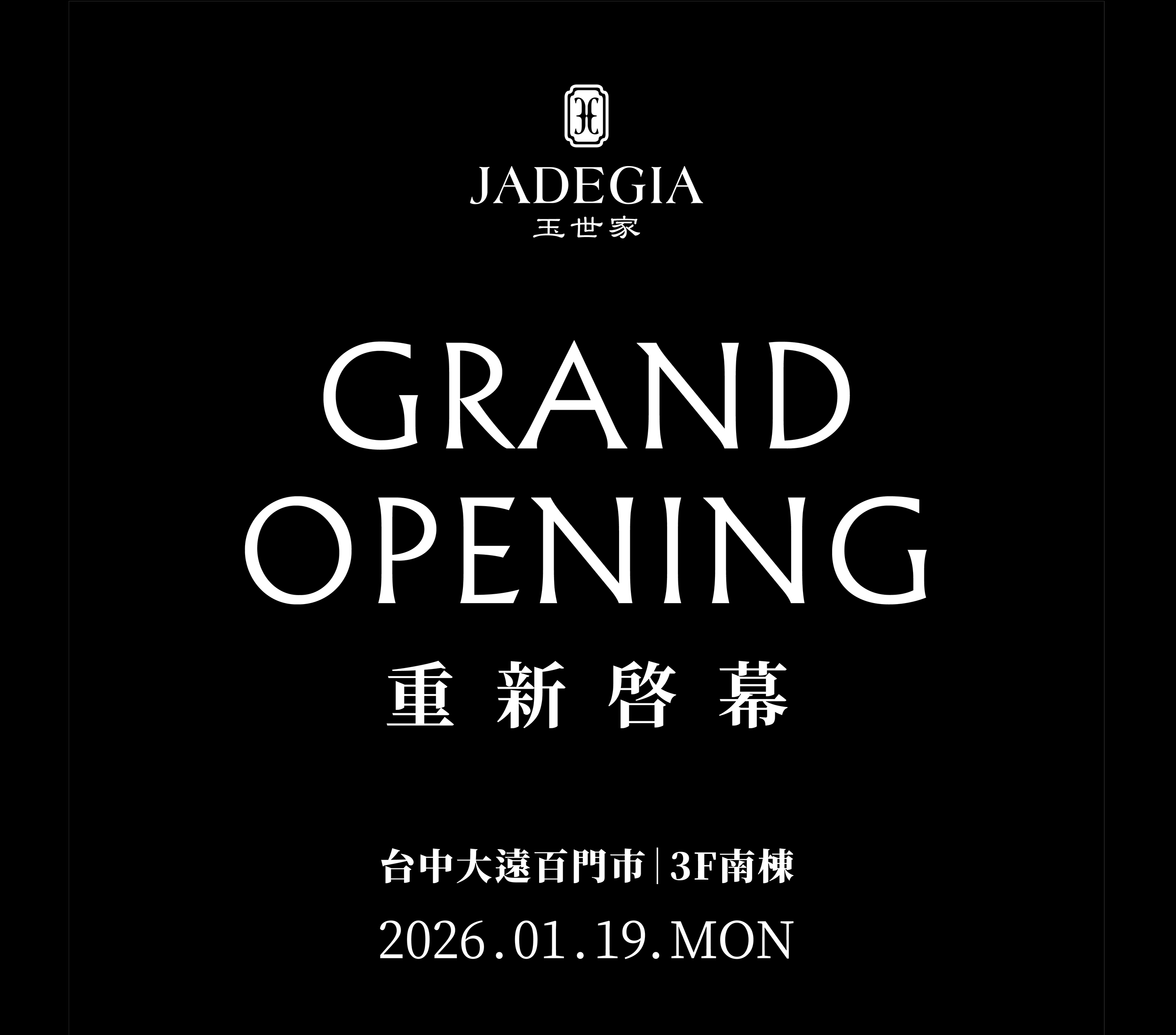 台中大遠百3F南棟玉世家門市於2026/1/19重新啟幕