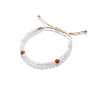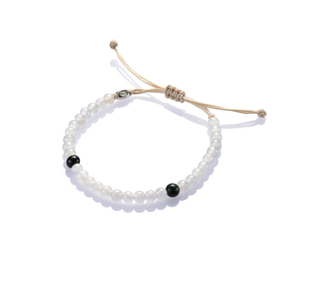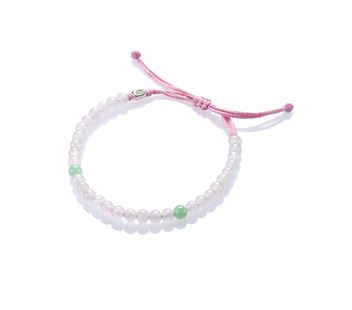 【Blessing】系列,以白翡為主視覺,質地清瑩,珠圓玉潤,間或搭襯綠、黑、紅、黃等不同色澤的翡翠圓珠,玲瓏晶透,翠色互為掩映,配以米色或粉紅或淡綠或淡紫的繩結,既內蘊著玉文化的善美本質,亦兼備了輕時尚珠寶的簡單美好。