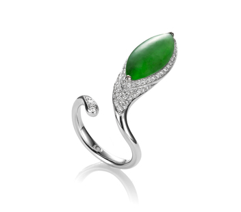 JADEGIA玉世家以翡翠為主石,結合蛇形指間戒的造型概念,設計出優雅的翡翠蛇形戒指,溫潤又光澤的翠玉,搭配流線靈動的戒身,融合了東西文化的美學與巧思,亦述說著女人的獨特氣韻。