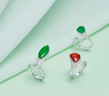 此款翡翠蛇形戒系列,可以有奪目的驚豔,也可以是日常的俏麗,它的魅力,可以隨著不同的穿搭而產生不同的美的向度,舉止之間,尤能展現一種不可取代的聰敏氣質。