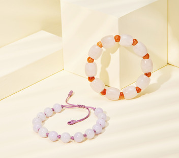 此系列翡翠手珠串,有以光素玉珠為主的【福緣歡喜】,既典雅,又喜氣,在圓融的玉光裡,成就歡喜福緣;亦有施以雕飾的【瑞雪春陽】,顆顆玉珠,琢以祥瑞圖紋,美與福氣並具。另有【不惑】與【慈悲】手珠串,顏色各異的潤澤圓珠,給人溫柔靜定的感動。