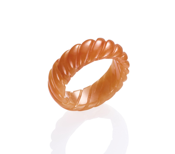 翡翠的硬度甚高,要實踐螺旋麻花紋飾的細膩美感,需要相當嫻熟的手藝,並在反覆的切磋琢磨之後,方能成就。此系列的紅翡玉鐲,色脈變化有致,鐲面的凹凸紋飾,刻劃自然,湧現著動靜之美;玉圈墜飾,琢以螺旋麻花紋飾,再襯以鑽石與紅寶,比例合度,作工精湛,時尚又大器;圈戒與耳環,則小巧輕盈,嬌俏生姿。