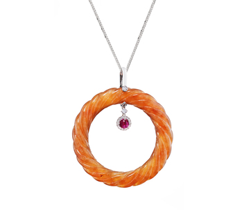 此系列紅翡珠寶,款式多樣,包括玉鐲、墜飾、耳環以及圈戒。設計師融入時尚創意,以螺旋麻花紋飾為主軸,搭配細膩的雕琢工藝,刻劃出一道道優雅又精緻的曲線,或交纏或層遞,彷彿時間流轉般的綿延不息,並搭配鑽石、紅寶等配飾,傳達著獨具個性的靈動之美。