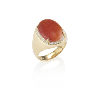 此次紅翡系列包括戒指、墜飾及耳環等款式,設計團隊以簡約俐落、富現代感的美學為主軸。紅翡鑲鑽戒指,以經典蛋面搭配鑽飾鑲嵌,簡潔戒身大器吉慶;紅翡墜飾以幾何造型設計,金色線條勾邊,再妝襯一枚小鑽,更顯獨特;紅翡耳飾則以玲瓏小圓珠形態,展現飛揚青春與甜美氣息。