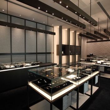 座落於板橋大遠百二期新館一樓的JADEGIA玉世家,佔地約30坪,整體風格承襲一貫大器優雅路線,並巧妙將東方人文精神融入西方美學設計,如以清代皇室收藏珍玩寶物的「多寶格」概念,打造出時尚簡約的櫥窗陳列空間,並將古代才德女子必備的「玉鐲」,化身為細膩雅致的現代裝置藝術-鐲圈垂簾,此外,兩幅由攝影大師蘇益良操刀拍攝的2015模特兒形象圖,無疑是捕捉目光的吸睛焦點,完美點亮JADEGIA玉世家品牌恢弘氣勢。古今中外並存的巧思與美感,處處用心營造可親近的低調奢華氛圍,使收藏家能悠然自在地於此鑑賞翡翠動人之美。