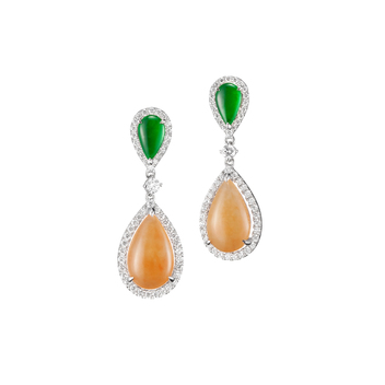 JADEGIA玉世家黃翡珠寶系列,包含著墜飾、耳環、戒指與胸針等各種款式,設計概念兼容了經典與時尚、具象與抽象。黃色翡翠,在玉色的象徵意義方面,蘊含著尊貴與財富,古時皇室貴族即已黃色為正色;選用這般古代皇室認定的至尊黃色調,以它的明亮感結合綠翠或鑽石點襯,以耀眼的自信風采,為珠寶之美詮釋獨有的美學風格。