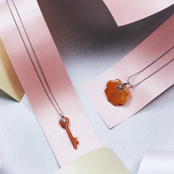 JADEGIA玉世家承襲品牌初衷,聚焦於東西方文化的交融與重組,同時亦致力推廣翡翠人文及美學設計。在【KEYMATE】墜飾系列中,設計師以古典的同心鎖與鑰匙意象為靈思,精湛技藝化為簡約利落的流線,搭配墜扣處的雲狀如意或古錢圖紋,帶來東西文化的精彩碰撞!單純的線條設計與紅色翡翠巧妙結合,個性純粹而鮮明,猶如情人之間的愛情綻放,那般炙熱、深厚且撼動人心。