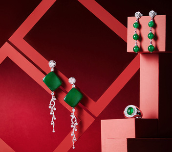 為迎接農曆春節和西洋情人節的雙喜來臨,JADEGIA玉世家特別精心選配一系列經典翡翠珠寶,包括長珠串、墜飾、戒指、耳環、手鍊等多樣款式,設計風格的面目,亦有各自的精彩,或東方風情,或西方品味,綠翠與白翡與鑽石與異色珠寶之間的相輔相成,蛋面的馬眼的方形的長形的三角的以及圓珠或古錢等造型,詮釋不同的視覺美學,也內蘊著不同的氣韻性情。